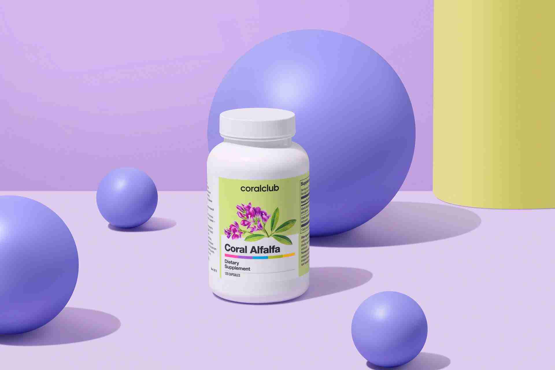מיץ מרוכז של עשב אספסת, עשב אספסת, סידן פחמתי, רכיבי עזר.